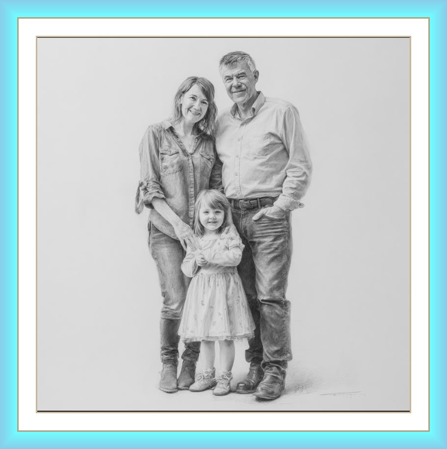 Dê asas à vossa história familiar com este Retrato a Carvão ou lápis ou lápis Personalizado.