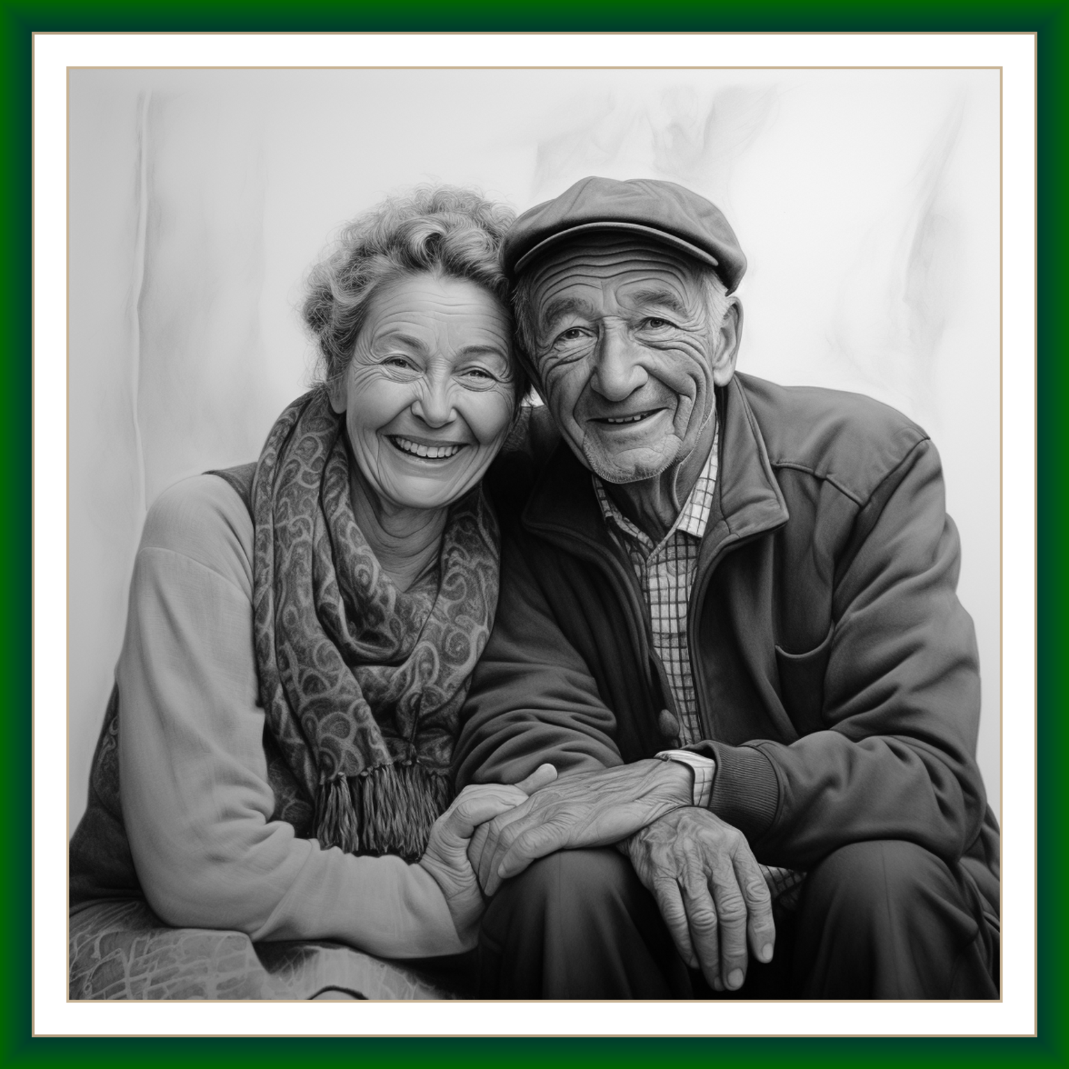 Neste retrato a carvão ou lápis, uma fotografia inspira a criação de uma peça única, que imortaliza a sua história de amor. Cada pincelada é um reflexo da sua dedicação e do carinho que você sente pelo seu ente querido.